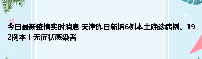 今日最新疫情实时消息 天津昨日新增6例本土确诊病例、192例本土无症状感染者
