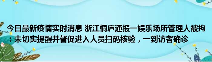 今日最新疫情实时消息 浙江桐庐通报一娱乐场所管理人被拘:未切实提醒并督促进入人员扫码核验,一到访者确诊