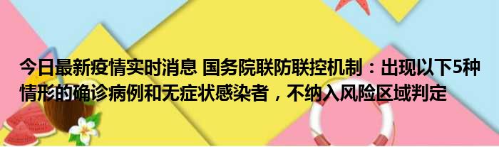 今日最新疫情实时消息 国务院联防联控机制:出现以下5种情形的确诊病例和无症状感染者,不纳入风险区域判定