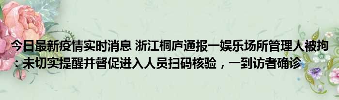 今日最新疫情实时消息 浙江桐庐通报一娱乐场所管理人被拘:未切实提醒并督促进入人员扫码核验,一到访者确诊