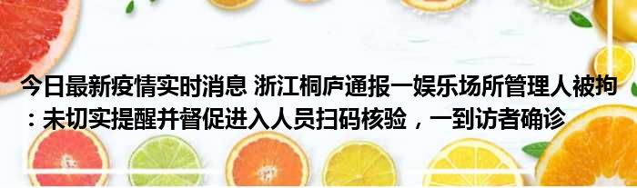 今日最新疫情实时消息 浙江桐庐通报一娱乐场所管理人被拘:未切实提醒并督促进入人员扫码核验,一到访者确诊