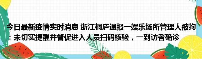 今日最新疫情实时消息 浙江桐庐通报一娱乐场所管理人被拘:未切实提醒并督促进入人员扫码核验,一到访者确诊
