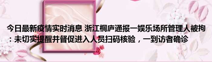 今日最新疫情实时消息 浙江桐庐通报一娱乐场所管理人被拘:未切实提醒并督促进入人员扫码核验,一到访者确诊