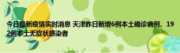 今日最新疫情实时消息 天津昨日新增6例本土确诊病例、192例本土无症状感染者
