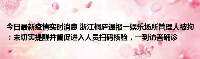今日最新疫情实时消息 浙江桐庐通报一娱乐场所管理人被拘:未切实提醒并督促进入人员扫码核验,一到访者确诊
