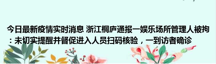 今日最新疫情实时消息 浙江桐庐通报一娱乐场所管理人被拘:未切实提醒并督促进入人员扫码核验,一到访者确诊