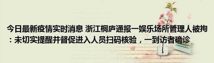 今日最新疫情实时消息 浙江桐庐通报一娱乐场所管理人被拘:未切实提醒并督促进入人员扫码核验,一到访者确诊