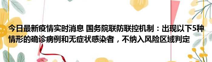 今日最新疫情实时消息 国务院联防联控机制:出现以下5种情形的确诊病例和无症状感染者,不纳入风险区域判定
