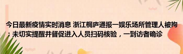 今日最新疫情实时消息 浙江桐庐通报一娱乐场所管理人被拘:未切实提醒并督促进入人员扫码核验,一到访者确诊