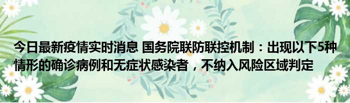 今日最新疫情实时消息 国务院联防联控机制:出现以下5种情形的确诊病例和无症状感染者,不纳入风险区域判定