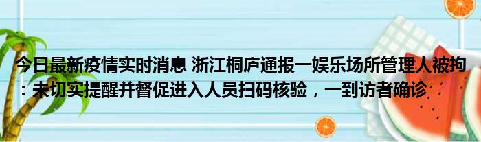 今日最新疫情实时消息 浙江桐庐通报一娱乐场所管理人被拘:未切实提醒并督促进入人员扫码核验,一到访者确诊