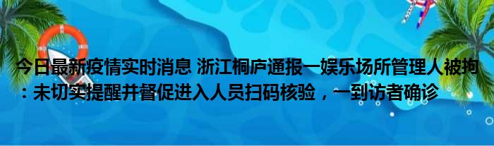 今日最新疫情实时消息 浙江桐庐通报一娱乐场所管理人被拘:未切实提醒并督促进入人员扫码核验,一到访者确诊
