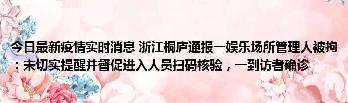今日最新疫情实时消息 浙江桐庐通报一娱乐场所管理人被拘:未切实提醒并督促进入人员扫码核验,一到访者确诊