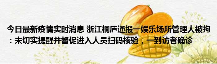 今日最新疫情实时消息 浙江桐庐通报一娱乐场所管理人被拘:未切实提醒并督促进入人员扫码核验,一到访者确诊