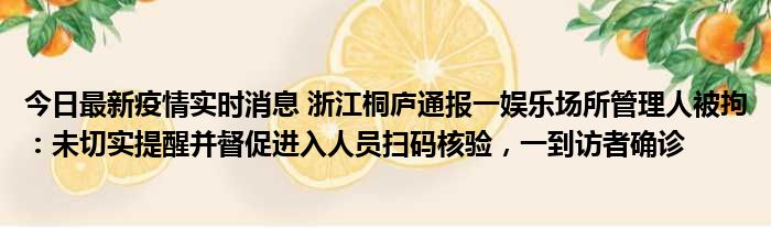 今日最新疫情实时消息 浙江桐庐通报一娱乐场所管理人被拘:未切实提醒并督促进入人员扫码核验,一到访者确诊