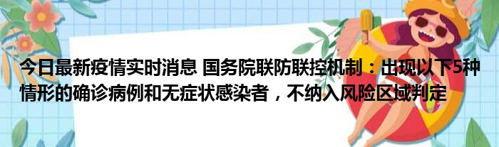 今日最新疫情实时消息 国务院联防联控机制:出现以下5种情形的确诊病例和无症状感染者,不纳入风险区域判定