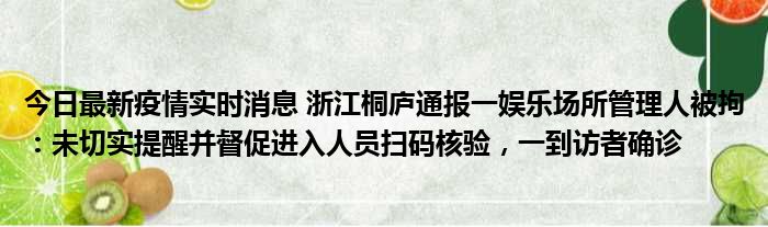 今日最新疫情实时消息 浙江桐庐通报一娱乐场所管理人被拘:未切实提醒并督促进入人员扫码核验,一到访者确诊