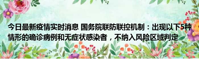 今日最新疫情实时消息 国务院联防联控机制:出现以下5种情形的确诊病例和无症状感染者,不纳入风险区域判定