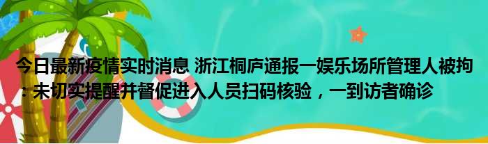 今日最新疫情实时消息 浙江桐庐通报一娱乐场所管理人被拘:未切实提醒并督促进入人员扫码核验,一到访者确诊