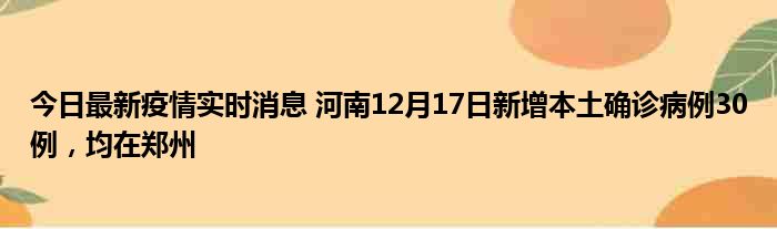 今日最新疫情实时消息 河南12月17日新增本土确诊病例30例,均在郑州