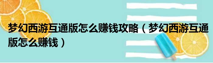 梦幻西游互通版怎么赚钱攻略(梦幻西游互通版怎么赚钱)