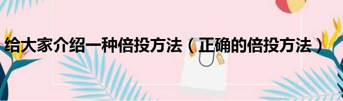 大家好,今天小六子来为大家解答以下的问题,关于给大家介绍一种倍投方法,正确的倍投方法这个很多人还不知道,现在让我们一起来看看吧!