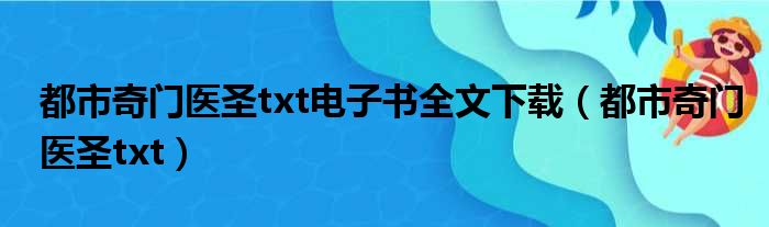 都市奇门医圣txt电子书全文下载(都市奇门医圣txt)
