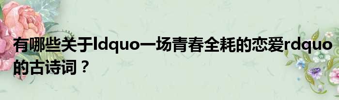 有哪些关于ldquo一场青春全耗的恋爱rdquo的古诗词?