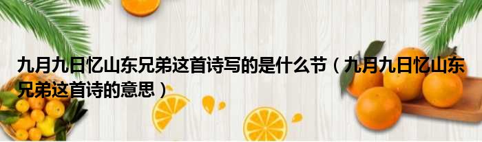 九月九日忆山东兄弟这首诗写的是什么节(九月九日忆山东兄弟这首诗的意思)