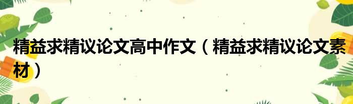 导读 大家好,今天小六子来为大家解答以下的问题,关于精益求精议论文高中作文,精益求精议论文素材这个很多人还不知道,现在让我们一起来看看吧