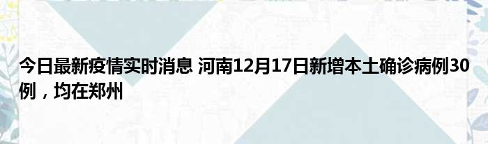 今日最新疫情实时消息 河南12月17日新增本土确诊病例30例,均在郑州