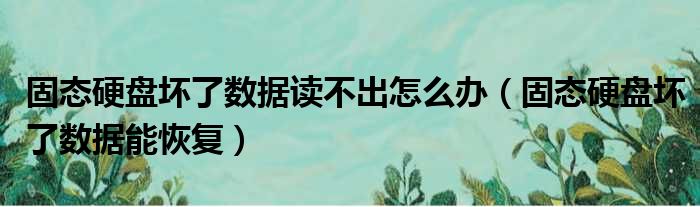 固态硬盘坏了数据读不出怎么办(固态硬盘坏了数据能恢复)