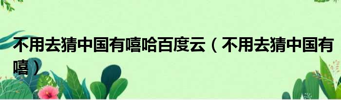 导读 大家好,今天小六子来为大家解答以下的问题,关于不用去猜中国有嘻哈百度云,不用去猜中国有嘻这个很多人还不知道,现在让我们一起来看看吧