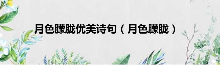 导读 大家好,今天小六子来为大家解答以下的问题,关于月色朦胧优美诗句,月色朦胧这个很多人还不知道,现在让我们一起来看看吧!1、“月色朦胧”