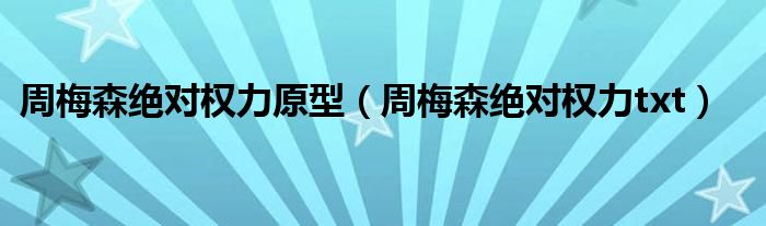 导读 大家好,今天小六子来为大家解答以下的问题,关于周梅森绝对权力原型,周梅森绝对权力txt这个很多人还不知道,现在让我们一起来看看吧!1、