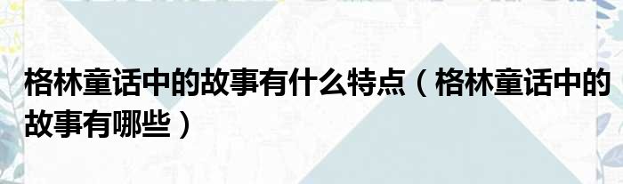格林童话中的故事有什么特点(格林童话中的故事有哪些)