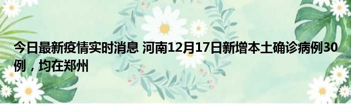 今日最新疫情实时消息 河南12月17日新增本土确诊病例30例,均在郑州