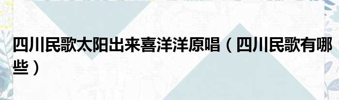 导读 大家好,今天小六子来为大家解答以下的问题,关于四川民歌太阳出来喜洋洋原唱,四川民歌有哪些这个很多人还不知道,现在让我们一起来看看吧