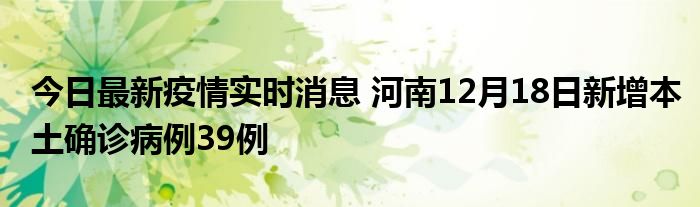 河南卫健委通报,12月18日0—24时,全省新增本土确诊病例39例(郑州市39例)无新增境外输入确诊病例18例本土确诊病例治愈出院(郑州市18例)