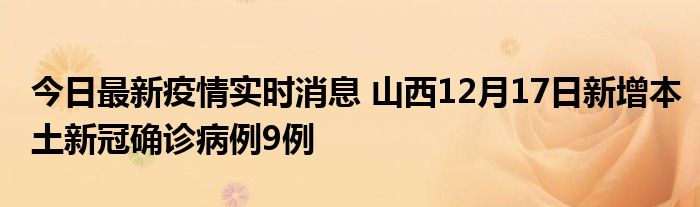 山西卫健委通报,2022年12月17日0-24时,山西省新增本土新冠肺炎确诊病例9例(晋城市城区1例;朔州市朔城区1例;运城市盐湖区2例;忻州市