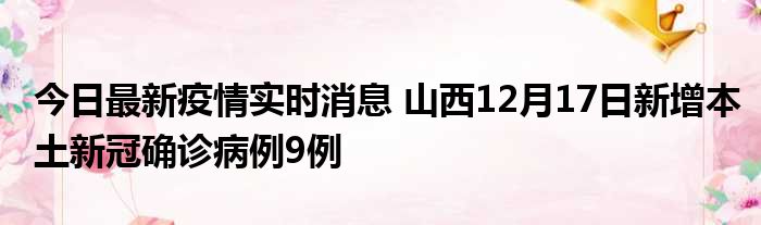 山西卫健委通报,2022年12月17日0-24时,山西省新增本土新冠肺炎确诊病例9例(晋城市城区1例;朔州市朔城区1例;运城市盐湖区2例;忻州市