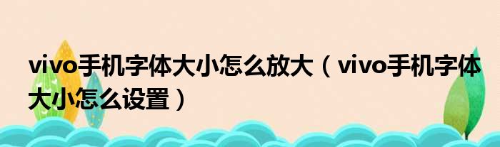 vivo手机字体大小怎么放大(vivo手机字体大小怎么设置)