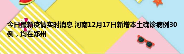 今日最新疫情实时消息 河南12月17日新增本土确诊病例30例,均在郑州