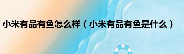 导读 大家好,今天小六子来为大家解答以下的问题,关于小米有品有鱼怎么样,小米有品有鱼是什么这个很多人还不知道,现在让我们一起来看看吧!1、