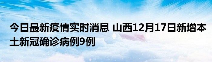 山西卫健委通报,2022年12月17日0-24时,山西省新增本土新冠肺炎确诊病例9例(晋城市城区1例;朔州市朔城区1例;运城市盐湖区2例;忻州市
