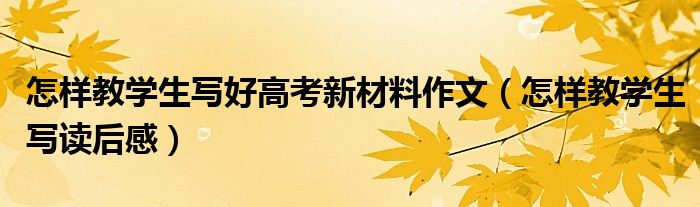 怎样教学生写好高考新材料作文(怎样教学生写读后感)