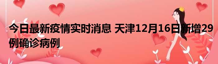 天津卫健委通报,2022年12月16日0时至24时,天津市疾控部门报告29例新冠肺炎确诊病例(均为轻型)
