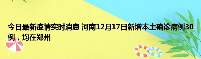 今日最新疫情实时消息 河南12月17日新增本土确诊病例30例,均在郑州