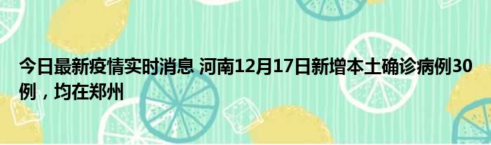 今日最新疫情实时消息 河南12月17日新增本土确诊病例30例,均在郑州