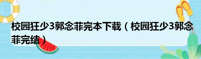 校园狂少3郭念菲完本下载(校园狂少3郭念菲完结)